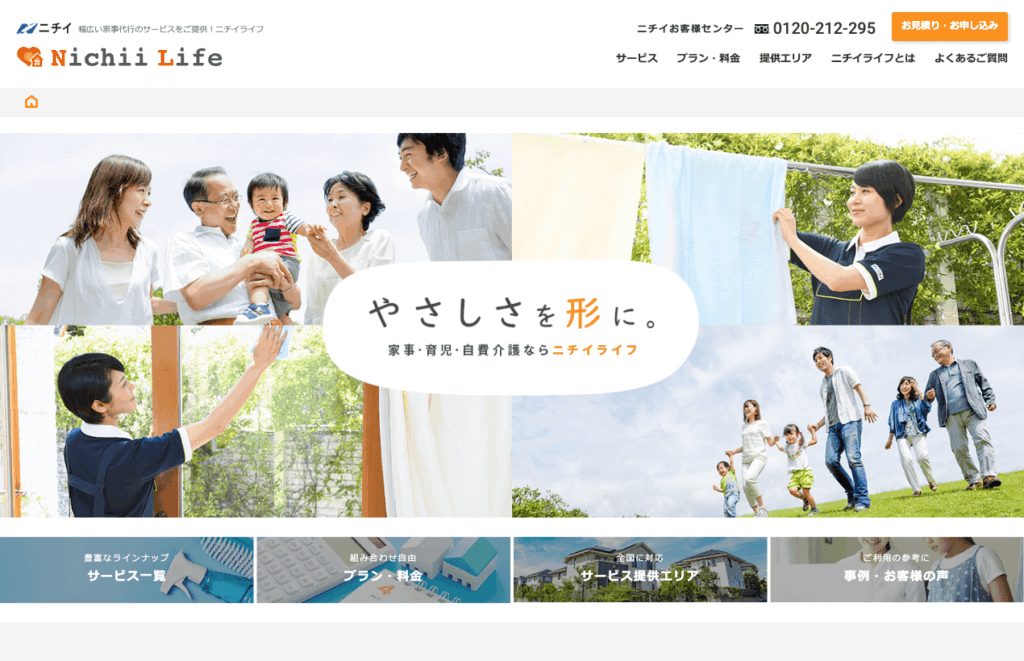 ニチイライフは「家族と同じ思いで、家族の代わりとなって支える」という理念のもと、日常生活に安心と快適さをプラスするサービスを提供しています。